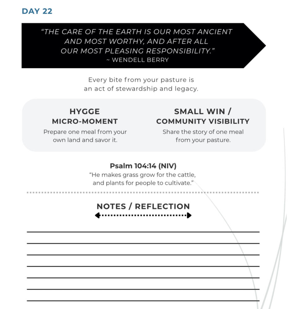 daily journal, stewardship journal, homestead journal, regenerative farming, land stewardship, hygge lifestyle, happiness, legacy leadership, principled living, farm mindset, mindful homesteading, daily reset, family leadership, timeless wisdom, homestead planner, self stewardship, pivot to pasture, homeschool journal, rural living, heart led leadership, community stewardship, seasonal living, farm family, grounded living