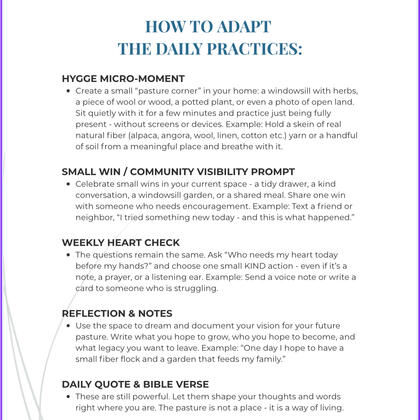 The complete family-first system includes over 100+ page manual and 40+ printable worksheets, core-values exercise, succession planner, generational goal tracker, seasonal hygge practices, biblical stewardship tools, and direct access to the Pivot Farm Builder App Legacy Tab.